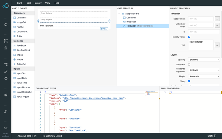 Adaptive Card Framework: Rich cards with buttons, fields, and layouts — all tied to dynamic business data.